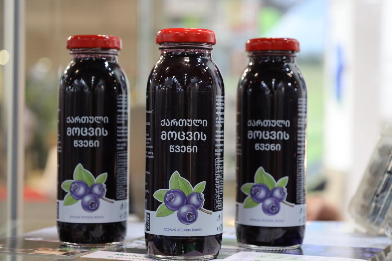 The Georgian pavilion featured stands of blueberry, nut, and spice-producing companies: Blue Bird Berries, Golden Farms, S.R.T., Agrolane, Agro Valley, Gentry Investments, Alpine Spices, Agritach, and Khoni Plantations.