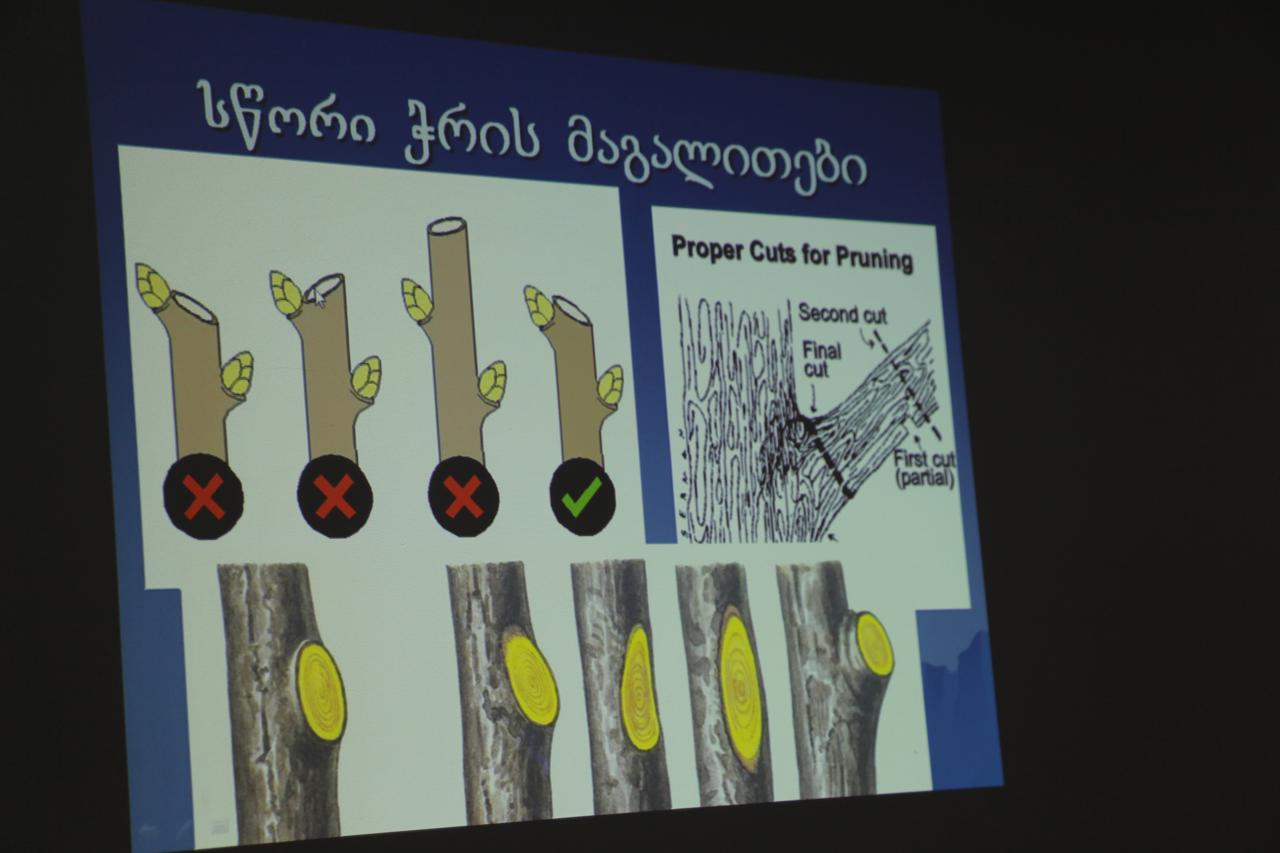 ბენეფიციარებს უფასო კურსი სოფლის მეურნეობის სამეცნიერო კვლევითი ცენტრის მებაღეობა-მევენახეობის კვლევითი სამსახურის უფროსმა ზვიად ბობოქაშვილმა ჩაუტარა. გადამზადების მიზანია, ბენეფიციარებმა შეისწავლონ თანამედროვე ინტენსიური და ნახევრადინტენსიური მრავალწლიანი კულტურის ბაღების სწორი მოვლის საშუალებები, რაც ბაღის გაშენების პერიოდში მოსალოდნელ რისკებს შეამცირებს.