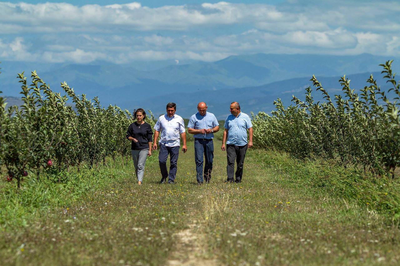 Within the framework of the "United AgroProject", the beneficiary of the project "Plant the Future", the cooperative "Agro Business Group" has cultivated a new apple garden on 20 hectares of land parcel. The fruit garden is located in the village of Pkhvenisi of Gori region. Mariam Mekoshkishvili, Project Manager of the Project "Plant the Future", together with Simon Guledani, the deputy governor of Shida Kartli and the representatives of local self-government, have visited the "Agro Business Group" apple garden.