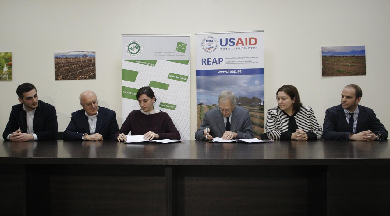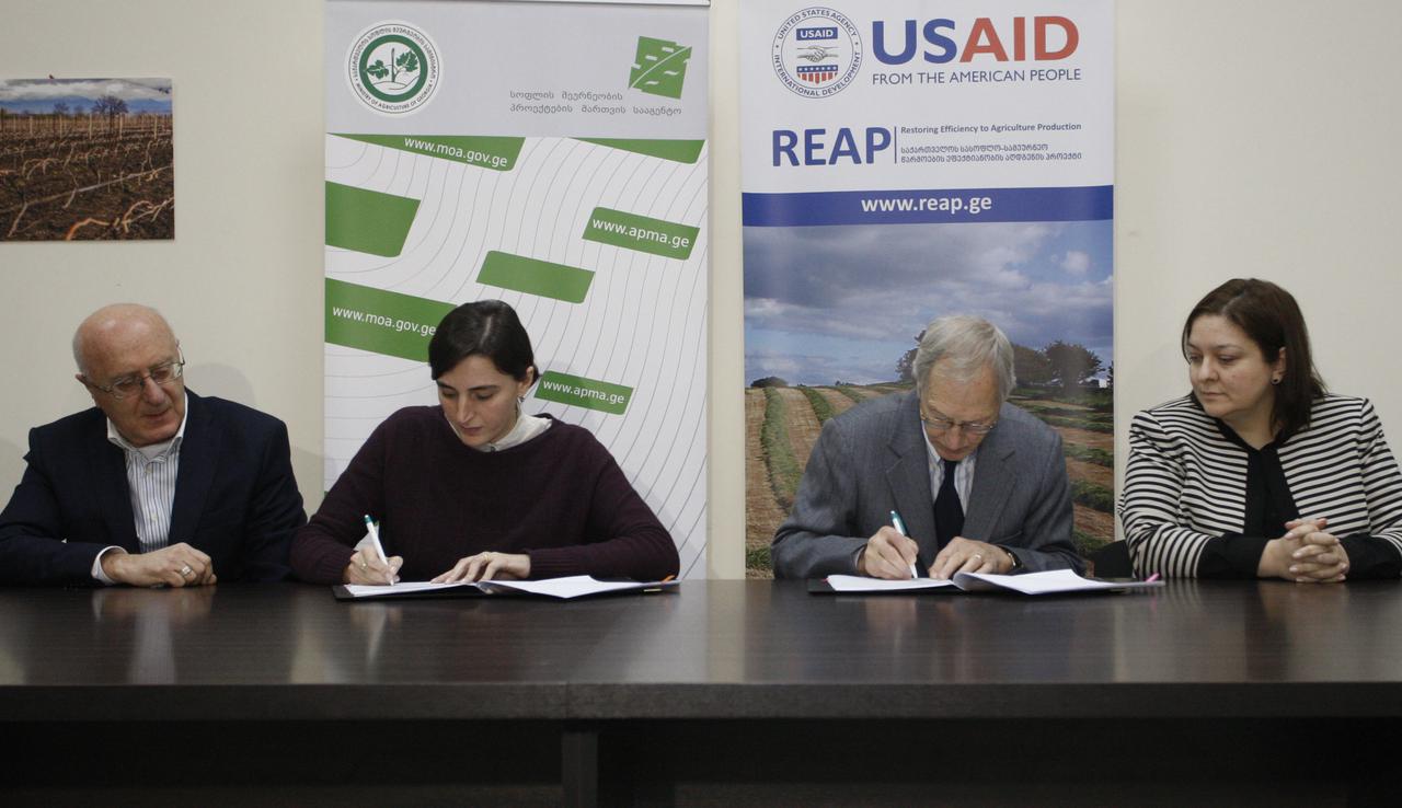 The Memorandum was signed by Mrs. Mariana Morgoshia, the Director of the Agricultural Projects Management Agency and Mr. Louis Faoro, the USAID/REAP Executive Director.