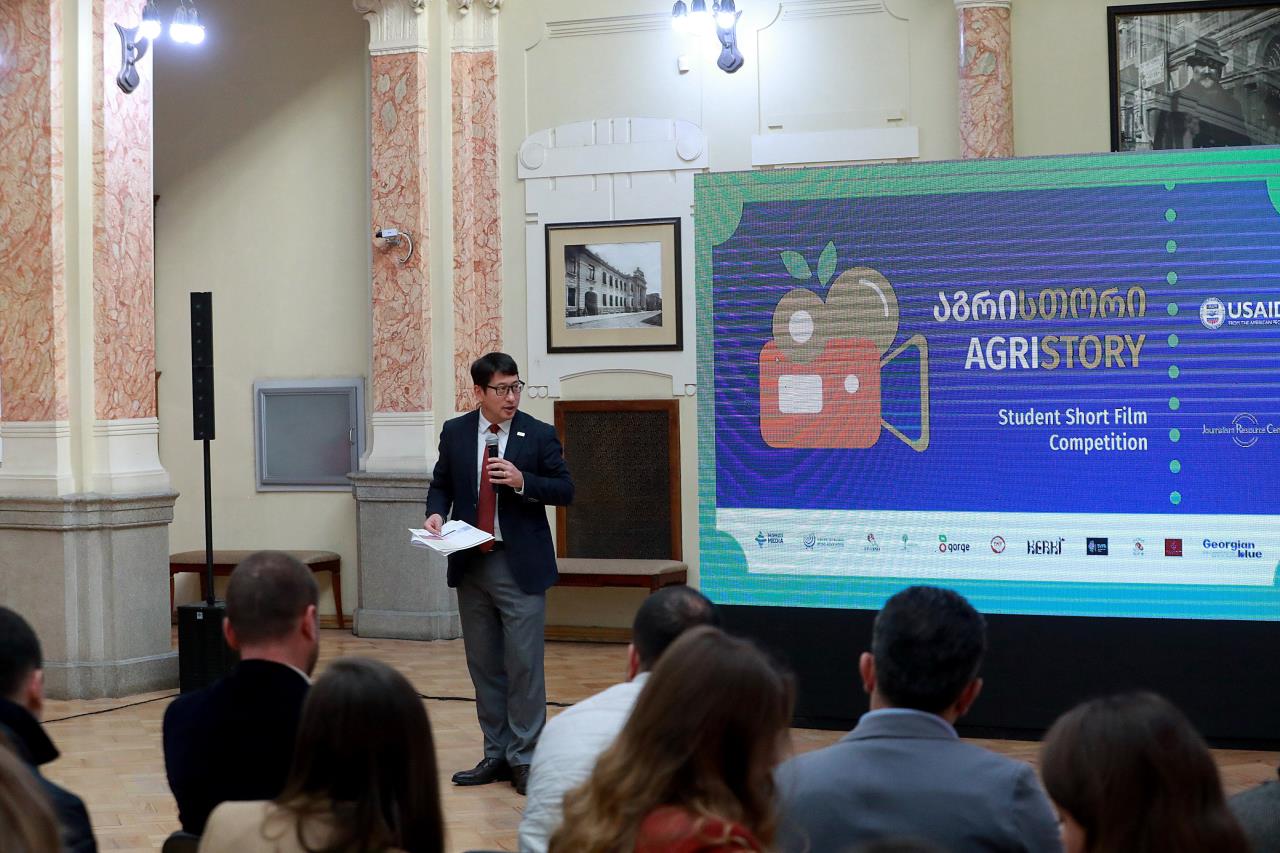 სოფლის განვითარების სააგენტოს დირექტორი ილია თამარაშვილი და აშშ-ის საერთაშორისო განვითარების სააგენტოს (USAID) საქართველოს მისიის დირექტორის მოადგილე დევიდ ჰოფმანი სტუდენტური, მოკლემეტრაჟიანი ფილმების კონკურსის ,,აგრისთორი’’ დაჯილდოებას დაესწრო.