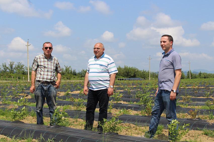 Mr. Levan Dolidze, the manager of the agro-project Plant the Future of the Agricultural Projects Management Agency, together with Mr. Gia Salukvadze, the Governor of Guria region and representatives of local administration, in the village Laituri, Ozurgeti district, Guria region, had examined the blueberry orchards planted on 10 hectares by the beneficiary participants - LTD Lurji Veli and LTD Motsvi - of the program.