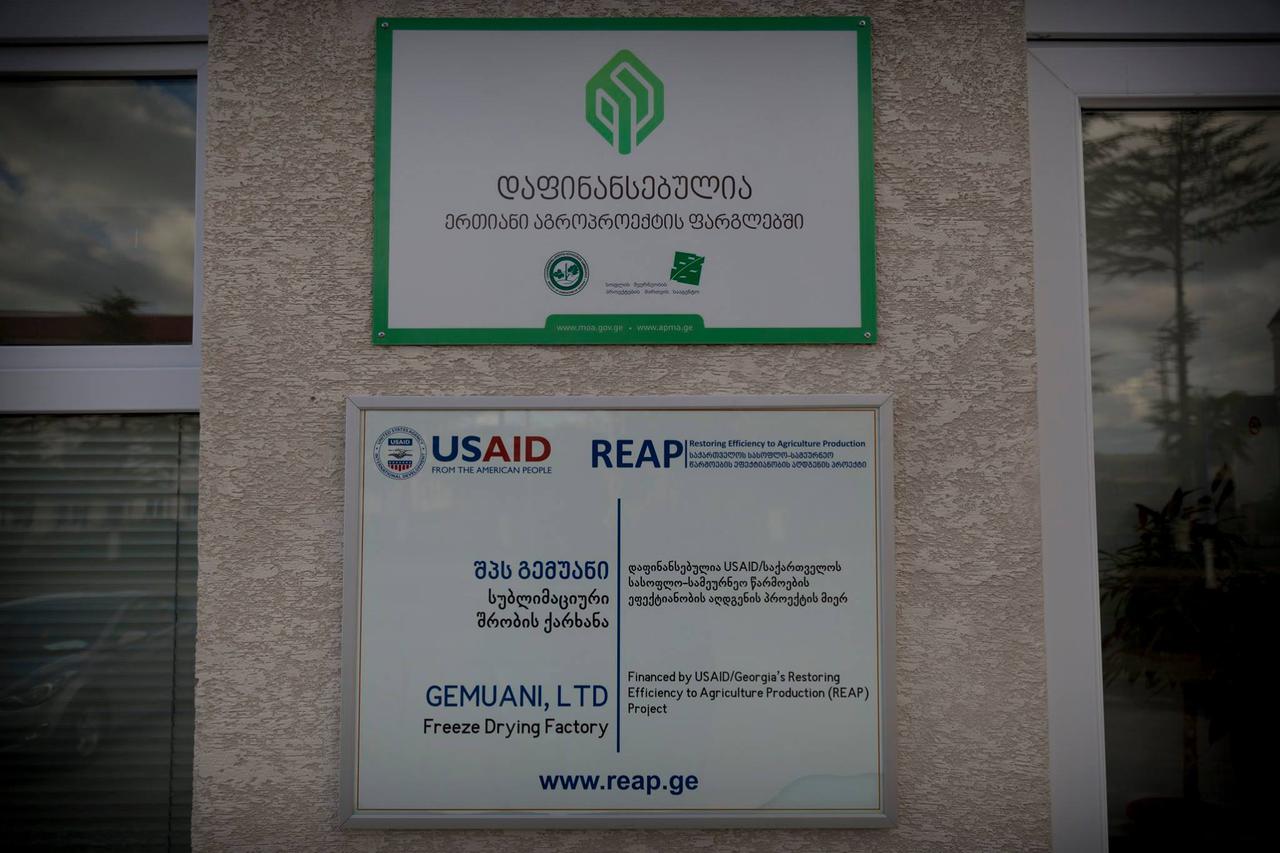 Investment in amount of 851 024 USD and one more new enterprise within the frameworks of United Agricultural Project. Today, the enterprise of freeze-dried fruit Gemuani was started in village Zeda Etseri by the Premier Minister of Georgia, Mr. Giorgi Kvirikashvili together with the Minister of Agriculture of Georgia, Mr. Levan Davitashvili. 22 tons of different species of freeze-dried fruits are annualy produced by the enterprise. There are 30 individuals employed in the enterprise. Production is sold at local market, as well as at export markets. Production is delivered to the enterprise by more than 150 small and medium farmers. The company is the beneficiary of the Program of co-financing of agricultural production processing and storage enterprises implemented within the frameworks of United Agricultural Project. In total 851 024 USD were invested to the enterprise, from here 250 000 USD is the grant and 484 512 USD preferential agricultural credit. In the nearest future the company plans to get ISO:22000 international standard by the support of USAID/REAP and Agricultural Projects Management Agency. Up to date, by the support of state programs 20 new enterprises were set up and 36 were expanded in Samegrelo region. Total investment of mentioned enterprises amounted up to 25 million dollars.