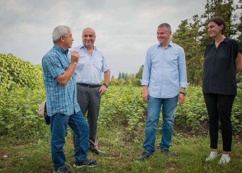 Zaza Kharchilava, the native of village Nosri of Senaki Municipality cultivated the nursery garden of local nut on 1.03 hectare are within the frameworks of agro-project Plant the Future. The above mentioned nursery garden was visited by Otar Danelia, the Minister of the Agriculture of Georgia, Levan Shonia, Governor of Samegrelo-Zemo Svaneti and Mariana Morgoshia, Head of Project Management Agency. The farmer Zaza Kharchilava was involved into the project in 2016. The beneficiary implemented the investment of more than 23 000 Lari for the creation of nursery garden. 11 500 Lari, half of the mentioned sum was given to the farmer by the Agricultural Projects Management Agency. 25 600 local strains of nut (Anaklian) are cultivated in to the nursery garden of 1.03 hectare area. At the moment 2 nursery gardens are financed in the region within the frameworks of the agro-project Plant the Future. New fruit orchards were planted on 1.478 area within the country and the amount of funding is more than 7.5 million Lari. The Agricultural Project Management Agency started the implementation of the project in 2015 on the basis of the initiative of the Ministry of Agriculture of Georgia. The main goal of the program is to promote the increase of intended use of agricultural lands, cultivation of perennial gardens and assistance in cultivation of nursery gardens in all municipalities of Georgia (except Tbilisi, Rustavi, Batumi, Kutaisi and Poti). The amount of co-financing of the state within the agro-project Plant the Future amounts: