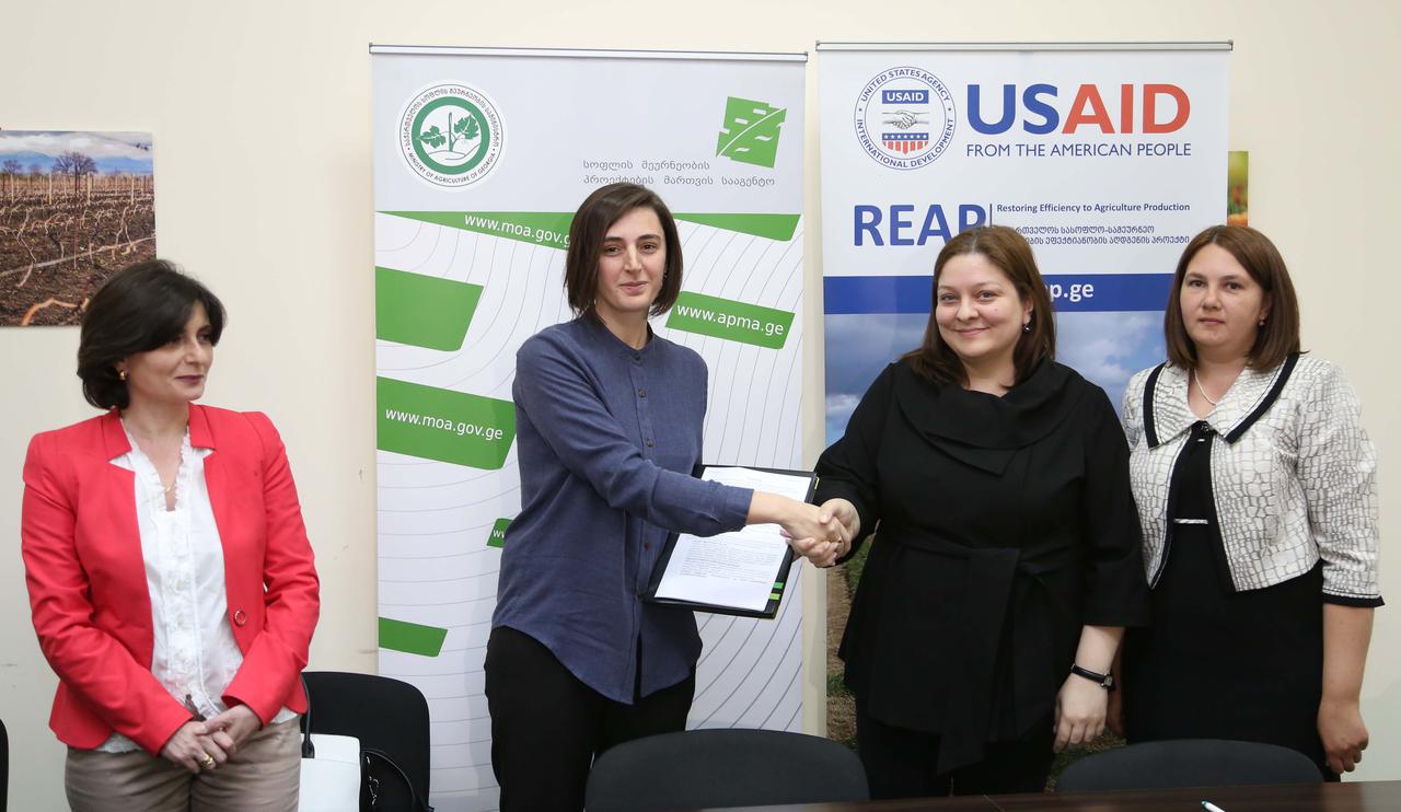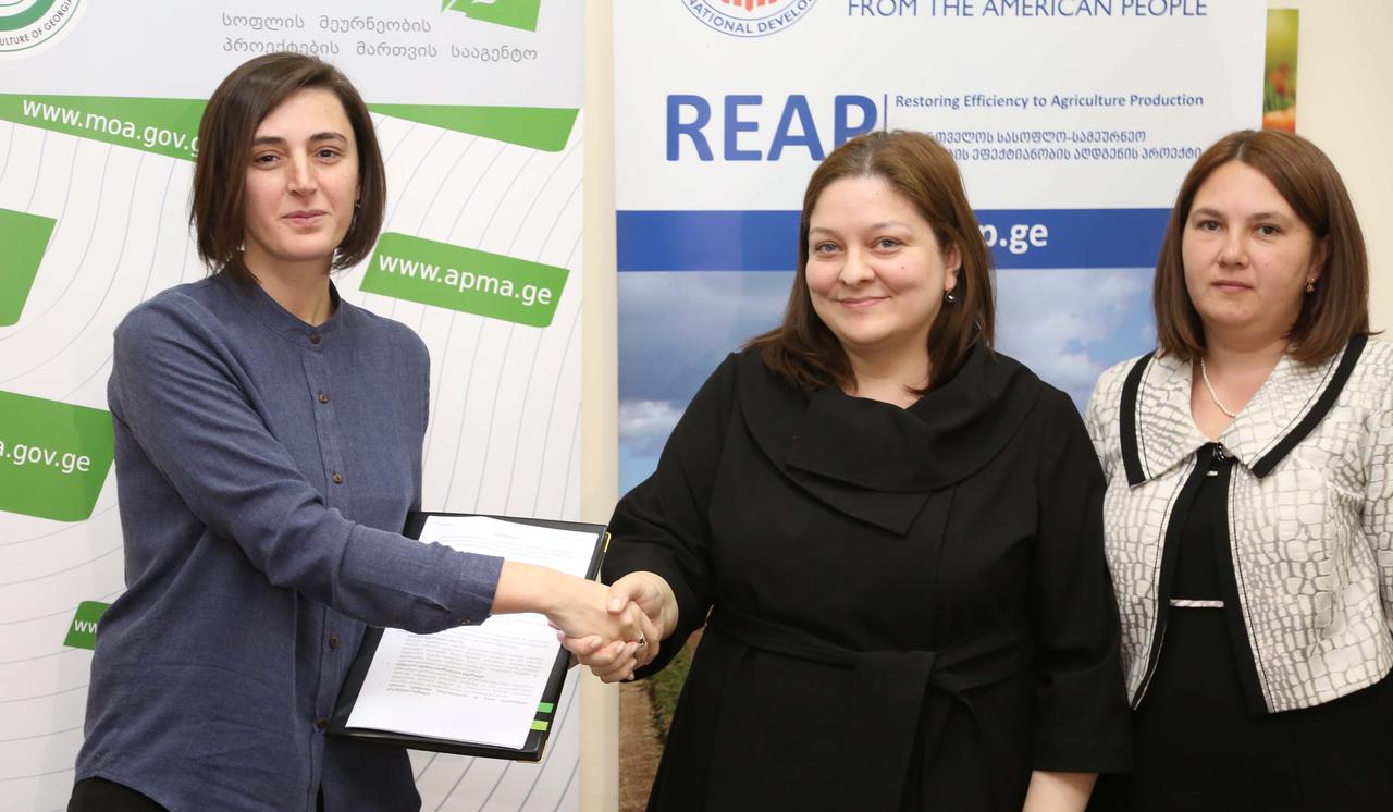 ხელშეკრულებას ხელი სოფლის მეურნეობის პროექტების მართვის სააგენტოს დირექტორმა, მარიანა მორგოშიამ და USAID/REAP-ის დირექტორმა, ლუიზა მანიჩეიშვილმა, საკონსულტაციო კომპანიების და საწარმოების დირექტორებმა მოაწერეს.