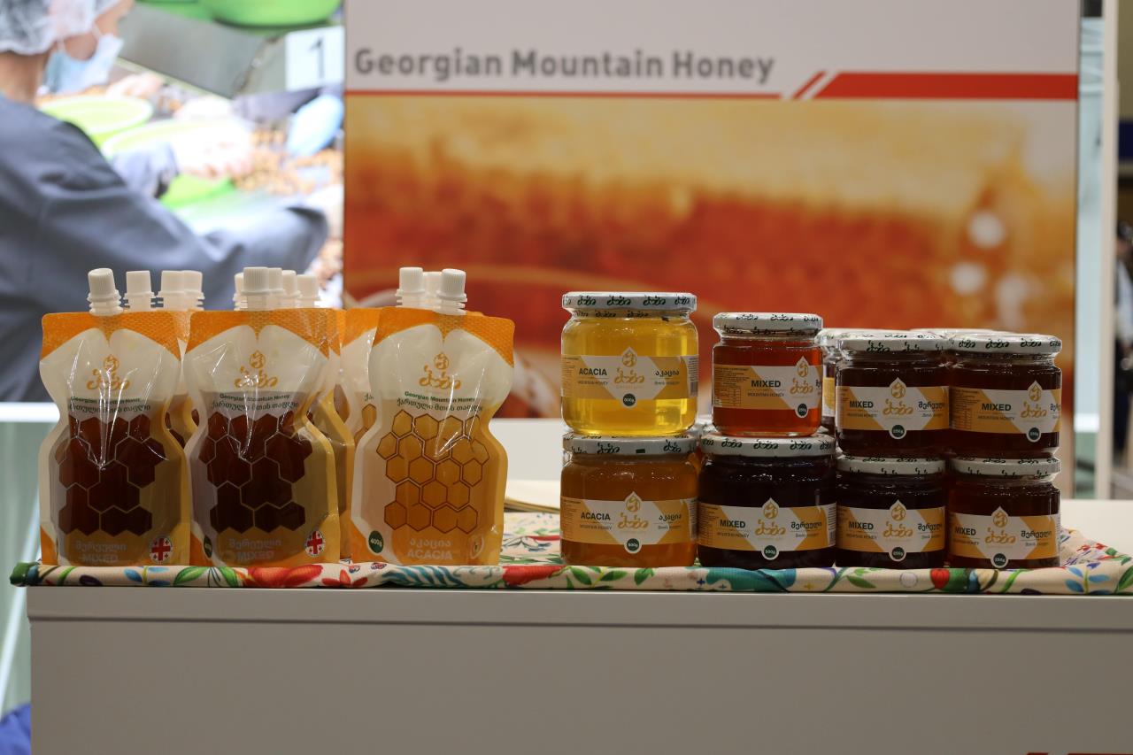 The Georgian stand featured products from companies such as "Khiliani," "Teliani Valley," "Georgian Natural Product," "TMT," "Achinebuli," "Chelti," "Kula," "Toreli Winery," "Meisterbrau," and "Hobby." These companies presented organic juices, lemonade, hazelnuts, wine, alcoholic beverages, honey, and preserved fruit and vegetable products. Visitors to the Georgian stand also had the opportunity to taste traditional Georgian dishes.