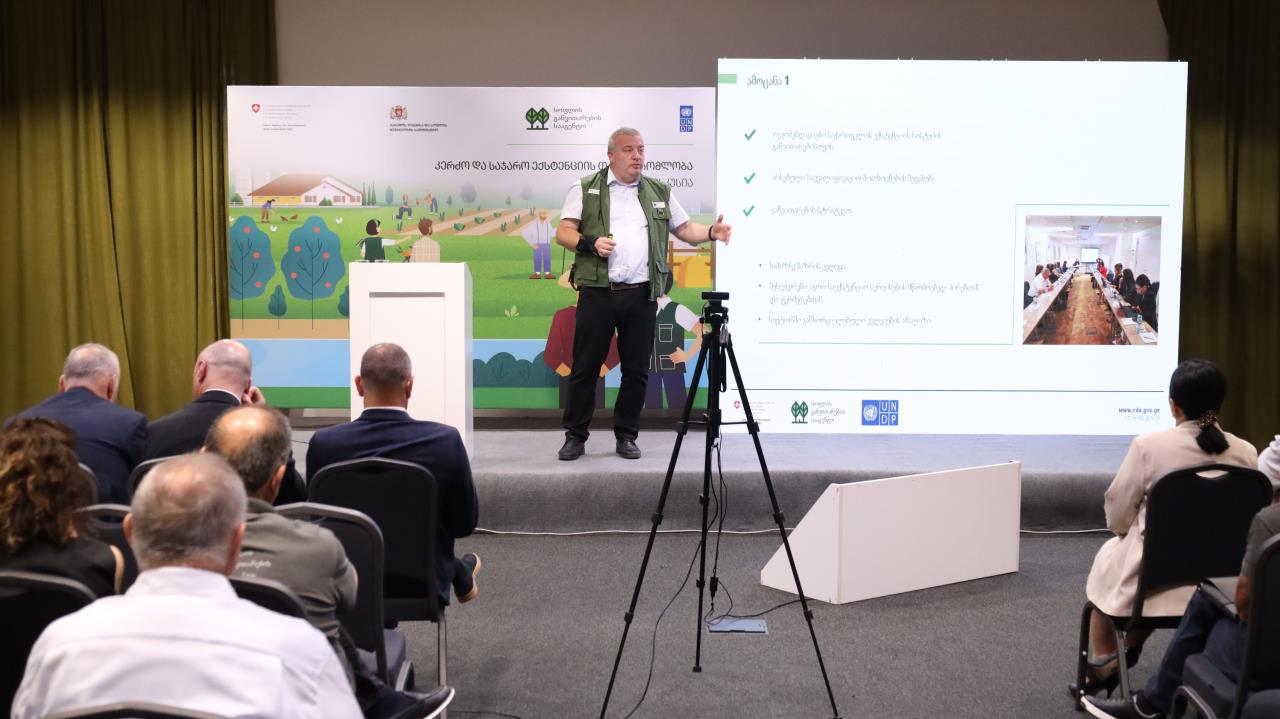 The forum was addressed by the Director of the Rural Development Agency, David Tsitlidze, and the representative of the United Nations Development Programme (UNDP), Elene Tsakaya. A presentation on the progress of the VET program was given by the head of the Regional Relations Department of the Rural Development Agency, Lasha Shalamberidze.