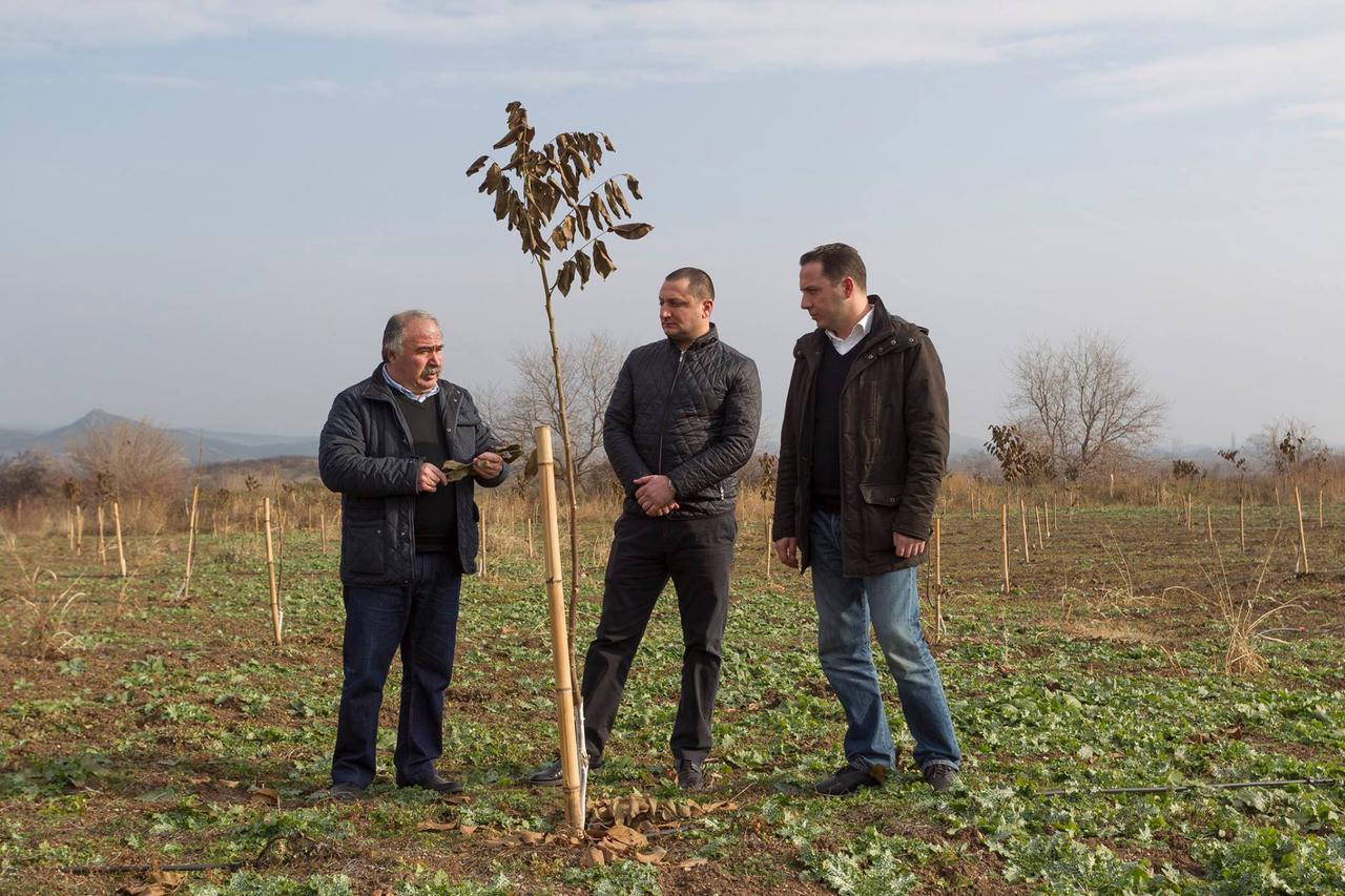 In the frames of the project Plant the Future, Deveplus Ltd. planted the walnut garden in the town of Bolnisi, Bolnisi District of Kvemo Kartli Region. The representative of the Agricultural Project Management Agency Mr. Levan Dolidze together with local self-government representatives visited the walnut garden planted on 5 hectares by Deveplus Ltd..