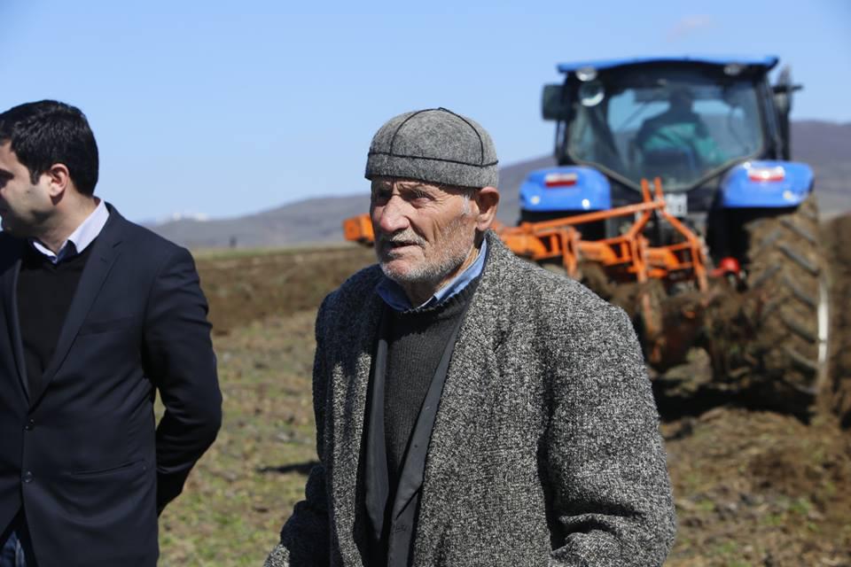 Ploughing activities in nearly 11 villages of Shida Kartli region located nearby the so called demarcation line are actively going on within the project for the assistance of small farmers in spring work 2016. Deputy Minister of Agriculture Iuri Nozadze , general Director of LTD Mechanization Paata Shekiladze and acting governor of Shida Kartli Soso Okromelidze got aquainted with ploughing activities in the village Zadiantkari, Lamiskana community of Kaspi region.. ,,The villages located nearby the demarcation line are in special need of assistance from the side of state. The Ministry of Agriculture has been implementing the project for the assistance of spring activities for 4 years, that is oriented to render maximum assistance to small farmers. The State provides the assistance to the farmers in the most important work-ploughing process. This year approximately 800,000 small farmers will receive the assistance within the program, - Iuri Nozadze stated. Ploughing activities in nearly 11 vilages Zadiantkari, Tvaurebi, Arbo, Nikozi, Tkiavi, shavshvebi, Avlevi, Dvani, Dirbi and so on located nearby the demarcation line is implemented only by the state LTD Mechanization.This year 232.86 hectare will be cultivated in the village Zadiantkari, lamiskana community. Approximately 406 farmers got the ploughing cards and 169 farmers agro cards. The works are implemented by five tractors of LTD Mechanization. 69049 farmers will benefit through the project for the assistance of spring works 2016 for small farmers. 16097 beneficiaries received agricultural, ploughing card (140 GEL for one hectare). Agro bonuses shall be placed on the agro cards of the local population that will enable them to by fertilizers, seed material, plant care products and plants.Assistance project for small farmers started in February 2016 and will finish in December 2016.