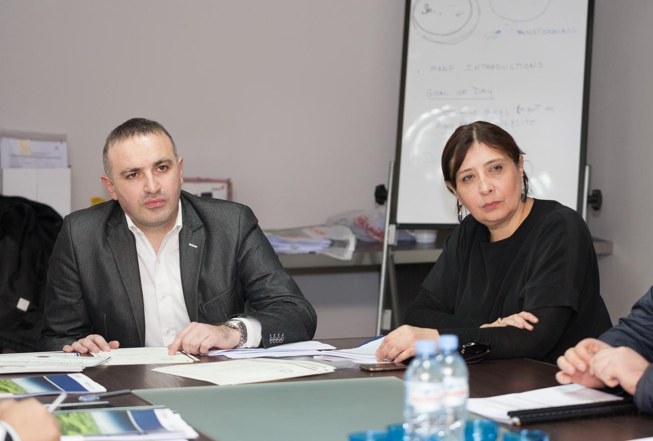 Mr. Aleksandre Nasaridze, the Deputy Director of Projects Management Agency of the Ministry of Agriculture of Georgia and Ms. Irine Salukvadze, Business development Manager of USAID/REAP acquainted to the development of the first seminar holding at the present time in Gori city.