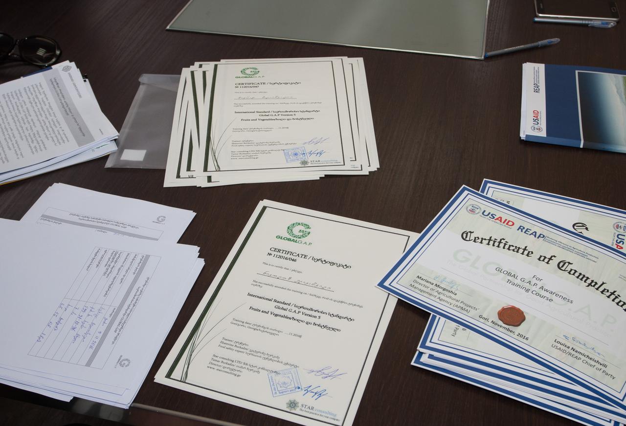 By the end of the above-mentioned seminar, the Beneficiaries shall have the opportunity to implement the GLOBAL GAP International standard and to be awarded with the relevant certificate. The 50 % of the total cost of certification program shall be granted by the support of USAID/REAP, out of which the remaining 50 % shall be paid by the beneficiary.