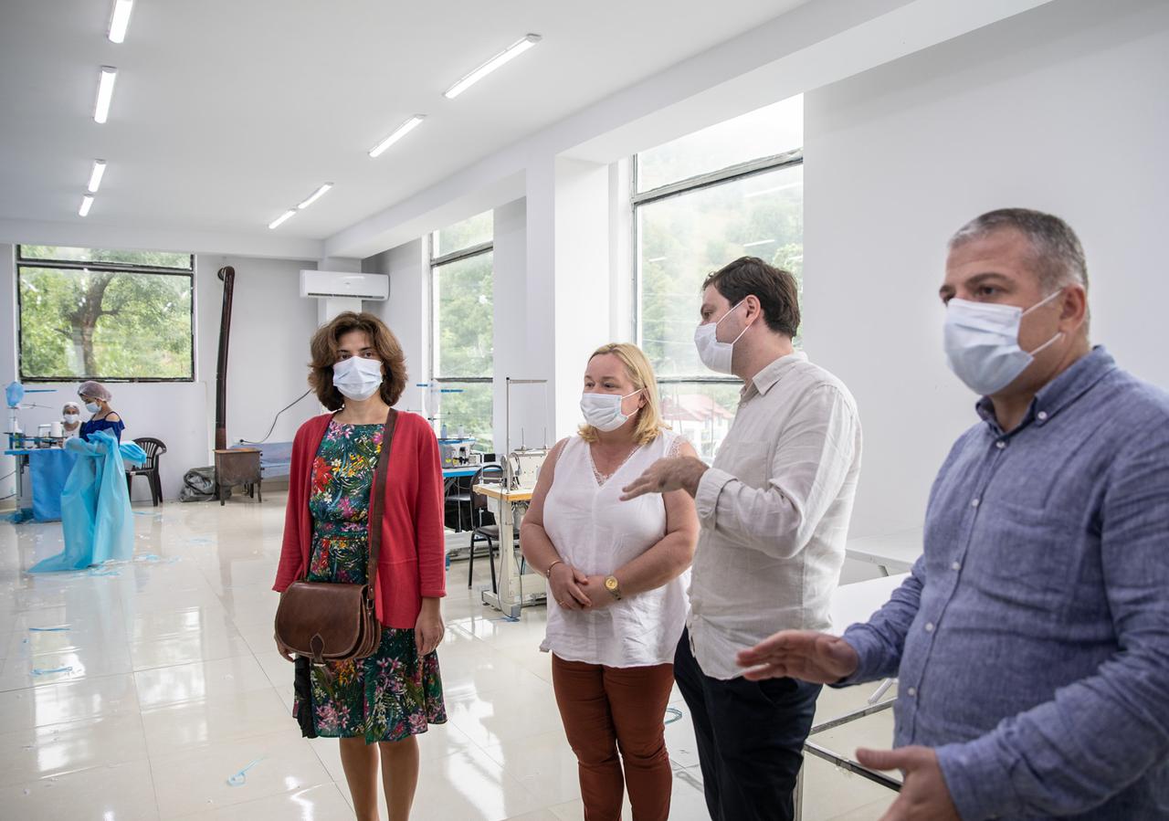 Giorgi Nanobashvili, Head of the Economic Development Unit of the United Nations Development Program (UNDP), Nodar Kereselidze, Improving Rural Development in Georgia Project Manager and Vakhtang Kontselidze, Project Coordinator, were also present to familiarize themselves with the working process at the garment manufacture.